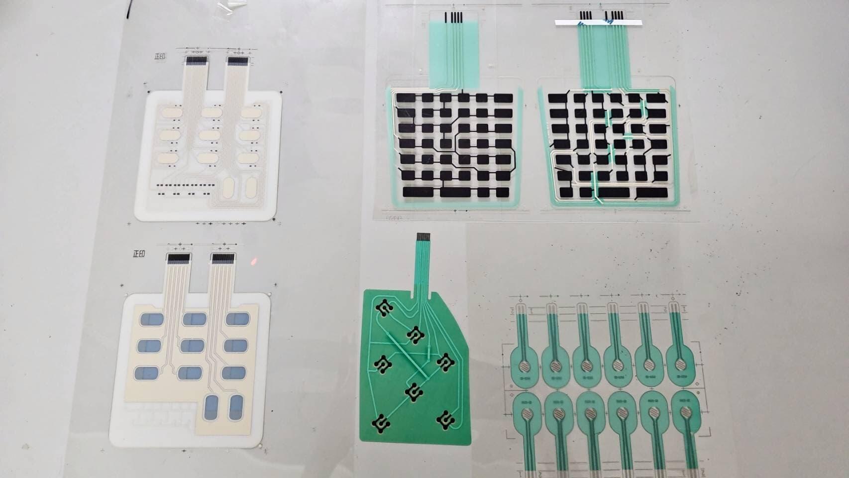 Membrane circuits are components consisting of a polyester film (PET) substrate with conductive ink such as carbon powder or silver paste printed on its surface. These circuits are primarily used in electronic devices, especially for connecting printed circuit boards (PCBs) to surface buttons.Here are the main characteristics and applications of these membrane circuits:Flexibility and Lightweight: The PET film substrate provides excellent flexibility and lightweight properties, allowing these membrane circuits to be applied to curved or bent surfaces of electronic devices while also contributing to overall weight reduction.Conductive Ink: Conductive ink is printed on the surface of PET film to form conductive patterns used for connecting functions in electronic devices. These conductive inks exhibit good conductivity and adhesion, enabling reliable connections.Reliability and Durability: Due to the use of PET film as the substrate, these membrane circuits possess excellent wear resistance and durability, maintaining stable performance over prolonged periods of use.Wide Range of Applications: These membrane circuits are commonly found in various consumer electronics such as mobile phones, tablets, remote controls, etc., used for connecting PCBs and surface buttons to achieve button operation functions.In summary, membrane circuits utilizing PET as the substrate and printed with conductive ink on the surface are common connecting circuit components. They feature flexibility, lightweightness, durability, and are widely applied in various consumer electronics.